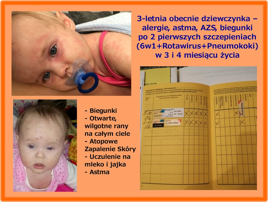 ma atopowe zapalenie skóry. Zapytałam ją, czy to może pochodzić ze szczepionek, ale zaprzeczyła temu i powiedziała,