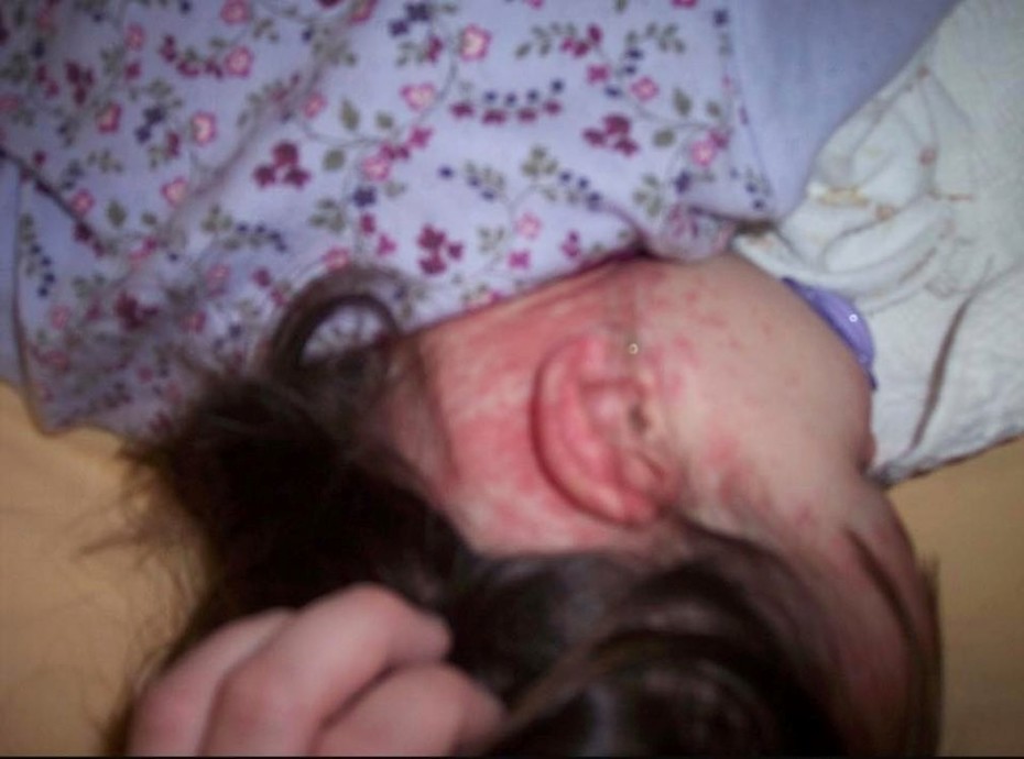 To są zdjęcia Elli w wieku 17 miesięcy, która w ciągu 10 dni od otrzymania swojej pierwszej dawki szczepionki MMR, ma za sobą pełny przebieg różyczki. Specjalistka ds. chorób w szpitalu Arnold Palmer pracuje tam od 23 lat i nigdy nie widziała takiego przypadku na własne oczy. Dosłownie wyciągnęła swój podręcznik, aby porównać zdjęcia. Przywieźli studentów, aby obserwowali