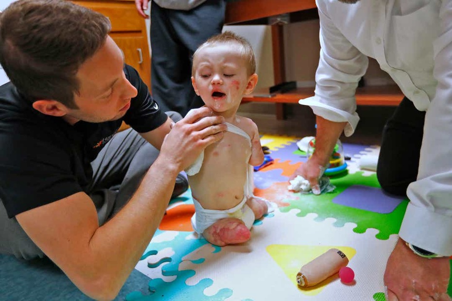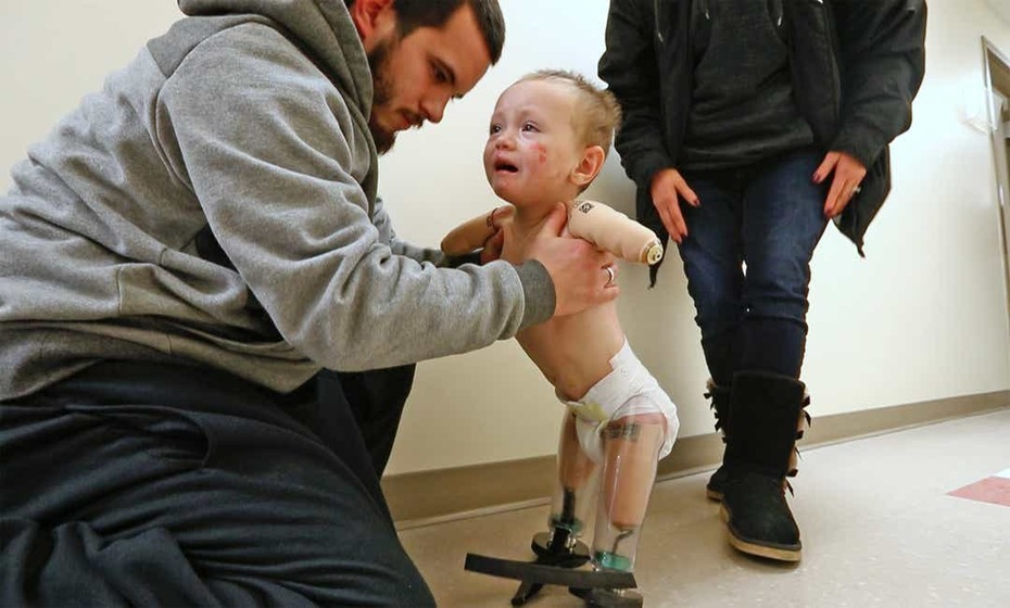 Tommy’emu (poniżej) amputowano kończyny z powodu zapalenia opon mózgowych wywołanego szczepionką. Żadnych przeprosin od lekarza, który go zaszczepił.