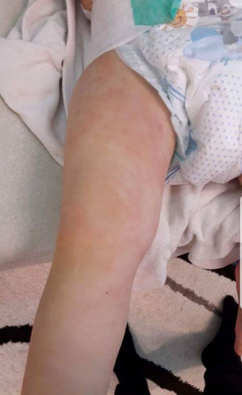 Pediatra po szczepieniach kazała za każdym razem podawać paracetamol żeby rączka nie bolała, to tak profilaktycznie i jak będzie temperatura. Podawałam przy pierwszym dziecku bo dopiero później wiedziałam czemu służy gorączka i synkowi nie podałam. Jakieś 3-4 dni miał 37-38,5 temp. po czym ten wysyp AZS ze zdjęcia. Całe nogi, pod kolanami, łokcie i na zgięciach, pośladki, plecy. Skóra szorstka. Jego płacz i ten ból w oczach po myciu, pokazywał mi rączką i mówił ,,bu bu" i płakał. Sączył się z tego płyn wodnisty. W zachowaniu też się zmienił. Mówił mało przed, bo pojedyncze słowa, ale po szczepionce tak jakby zamilkł. Tylko obserwował jakby był zadumany. Przestał się uśmiechać. Okropne bóle nóg w nocy, lekarz twierdził że bóle wzrostowe. W nocy płakał jakby coś mu się śniło strasznego, taki lament, ciężko to wytłumaczyć. Nie zwracałam na to uwagi wcześniej.